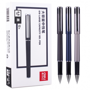 得力S107签字笔 商务 高档金属中性笔学生黑色 粗1.0mm